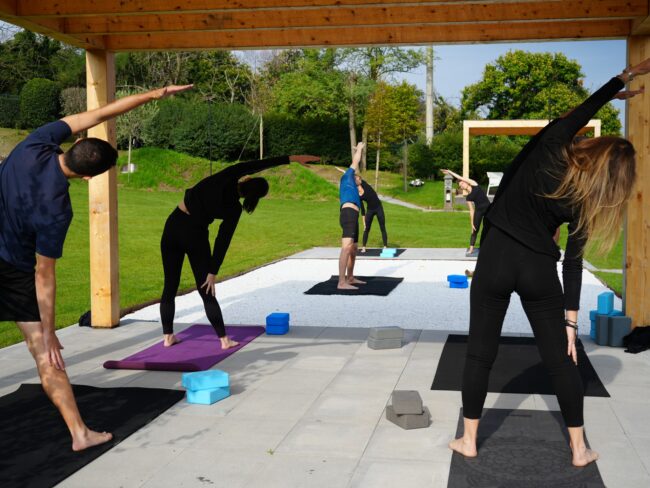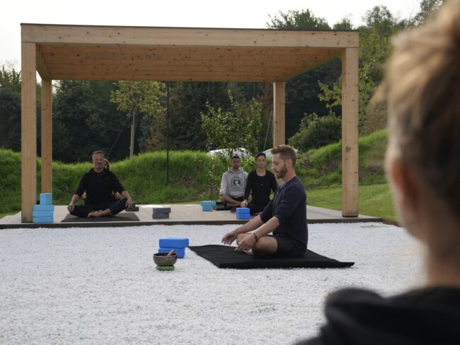 The classic way of doing Yoga: a group, a teacher guiding through exercises and postures.